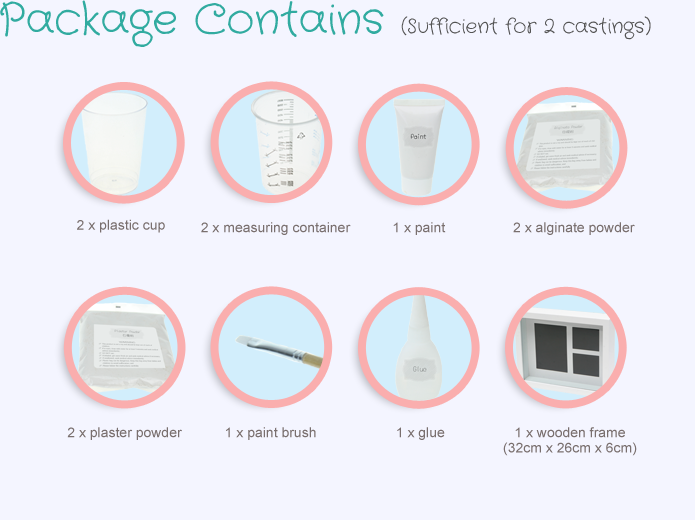 First Impressions knows that some parents enjoy taking hand/foot casts of their precious babies themselves. First 3D Casting Kit includes all basic materials for the bady hand/foot cast. A step by step video is available for parents to complete an unique memento easily.